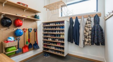 - 靴収納の工夫: 泥が付いたまま収納できるよう、可動棚の棚板を水に強い金網や樹脂製のものにする。下部に泥受け皿を設置し、掃除をしやすくする。