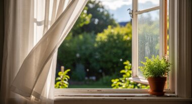 対角線上にある窓を5〜10分間、全開にすると、家全体に強い風の流れができ、空気の入れ替えが瞬時に行われます。