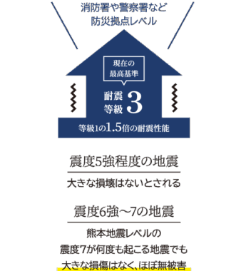 特に、病院や学校と同レベルの強度とされる耐震等級3は、消防署など防災拠点となる建物に匹敵する目安です。
