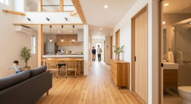G2の家は、エアコンが効いているリビングと、廊下や脱衣所、トイレとの温度差がほとんどありません。これにより、冬場に起こりがちなヒートショックのリスクを最小限に抑え、高齢者や乳幼児がいても安心して暮らせます。特に、朝の忙しい時間帯に家族全員が順番に利用する水回りが快適になるのは、生活の質の向上に直結します。