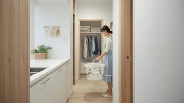 例えば、洗濯→干す→しまう の動線を短縮する間取りや、リビング学習に対応できるスタディスペースの設置などが挙げられます。