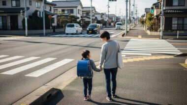 通学路の安全性:実際に子どもと一緒に歩き、交通量、信号の有無、危険な交差点、不審者の隠れやすい場所(空き地など)がないかを確認。